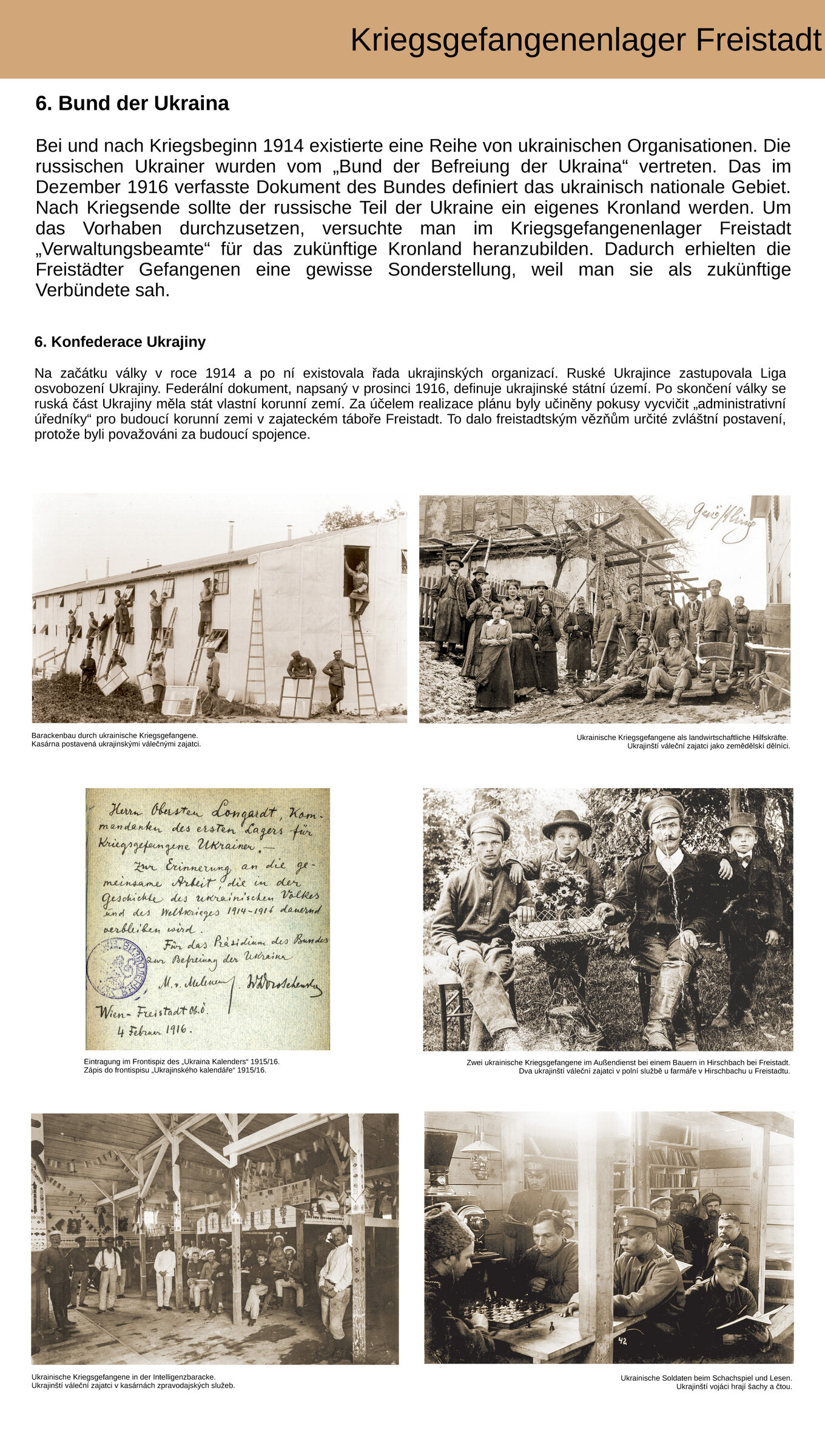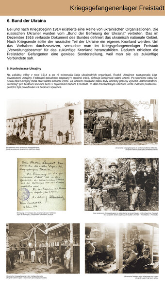Tafel "Bund der Ukraina" - Ausstellung: FREISTÄDTER UKRAINERLAGER 1914 -1918. Eine „Stadt in der Stadt“ im Mühlviertler Schlossmuseum Freistadt.