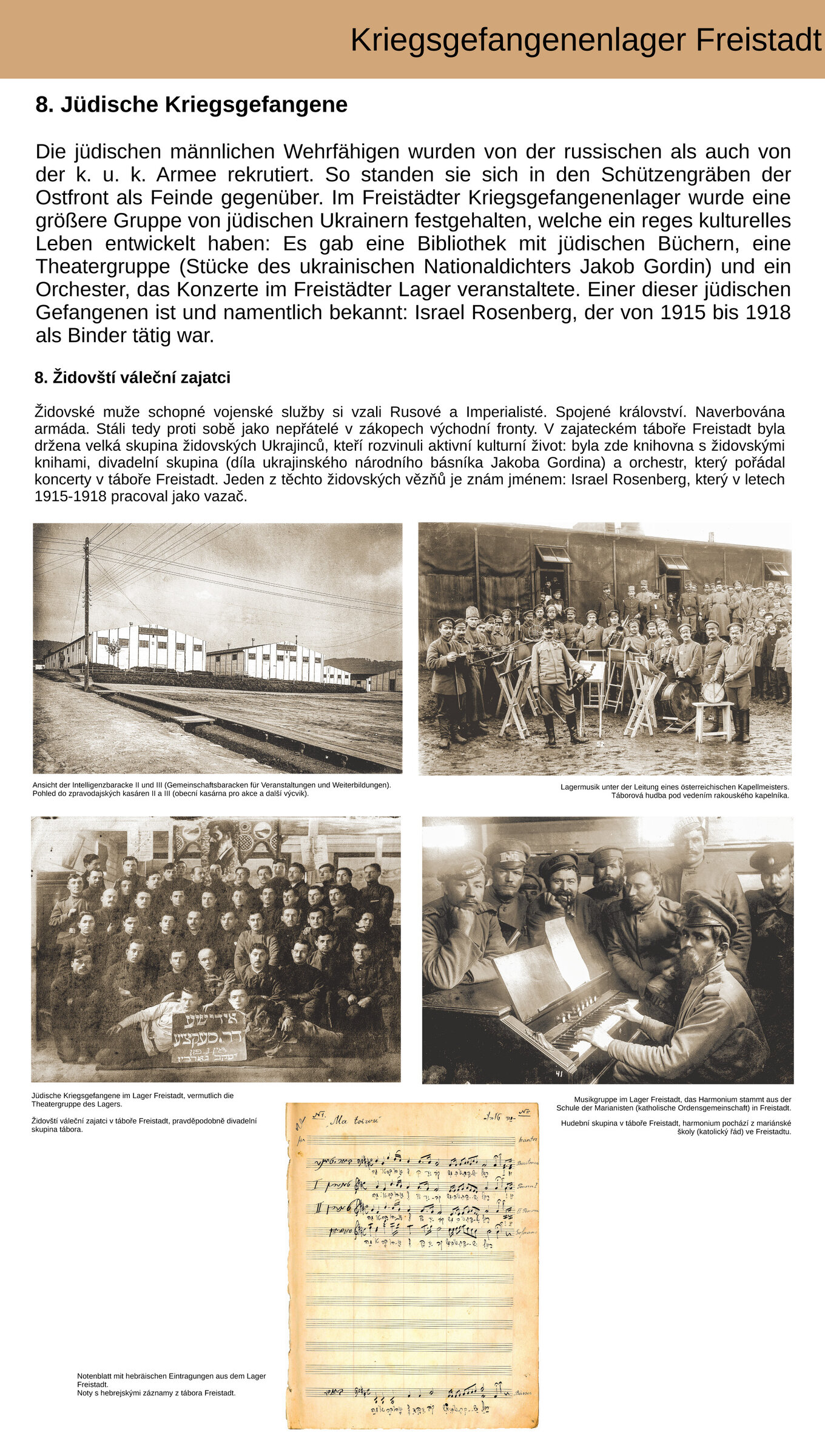 Tafel "Jüdische Kriegsgefangene" - Ausstellung: FREISTÄDTER UKRAINERLAGER 1914 -1918. Eine „Stadt in der Stadt“ im Mühlviertler Schlossmuseum Freistadt.