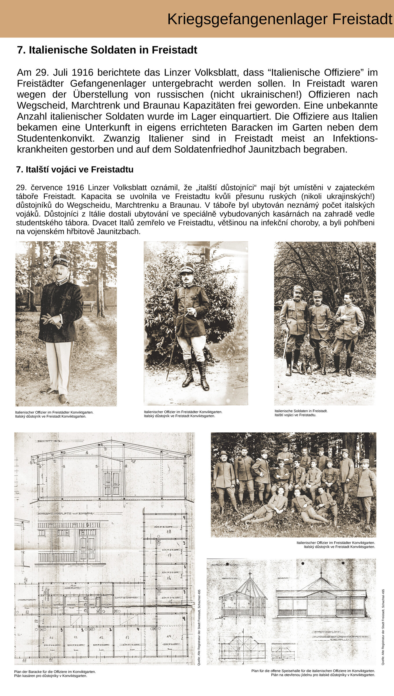 Tafel "Italienische Soldaten in Freistadt" - Ausstellung: FREISTÄDTER UKRAINERLAGER 1914 -1918. Eine „Stadt in der Stadt“ im Mühlviertler Schlossmuseum Freistadt.