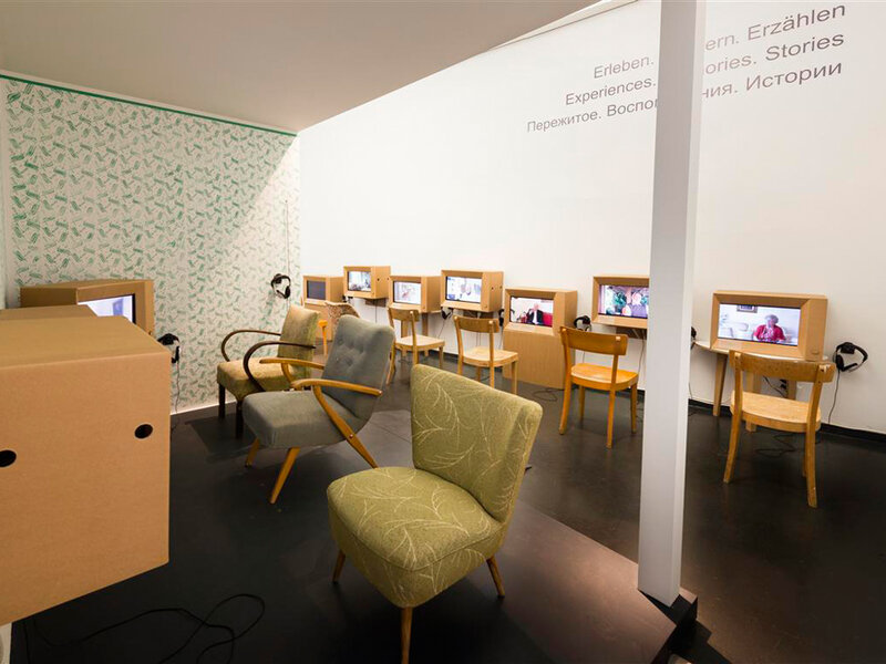 Ansicht "Erleben. Erinnern. Erzählen" aus der Ausstellung "GETEILTE STADT. Linz 1945-55", NORDICO Stadtmuseum Linz, 2015; © Norbert Artner