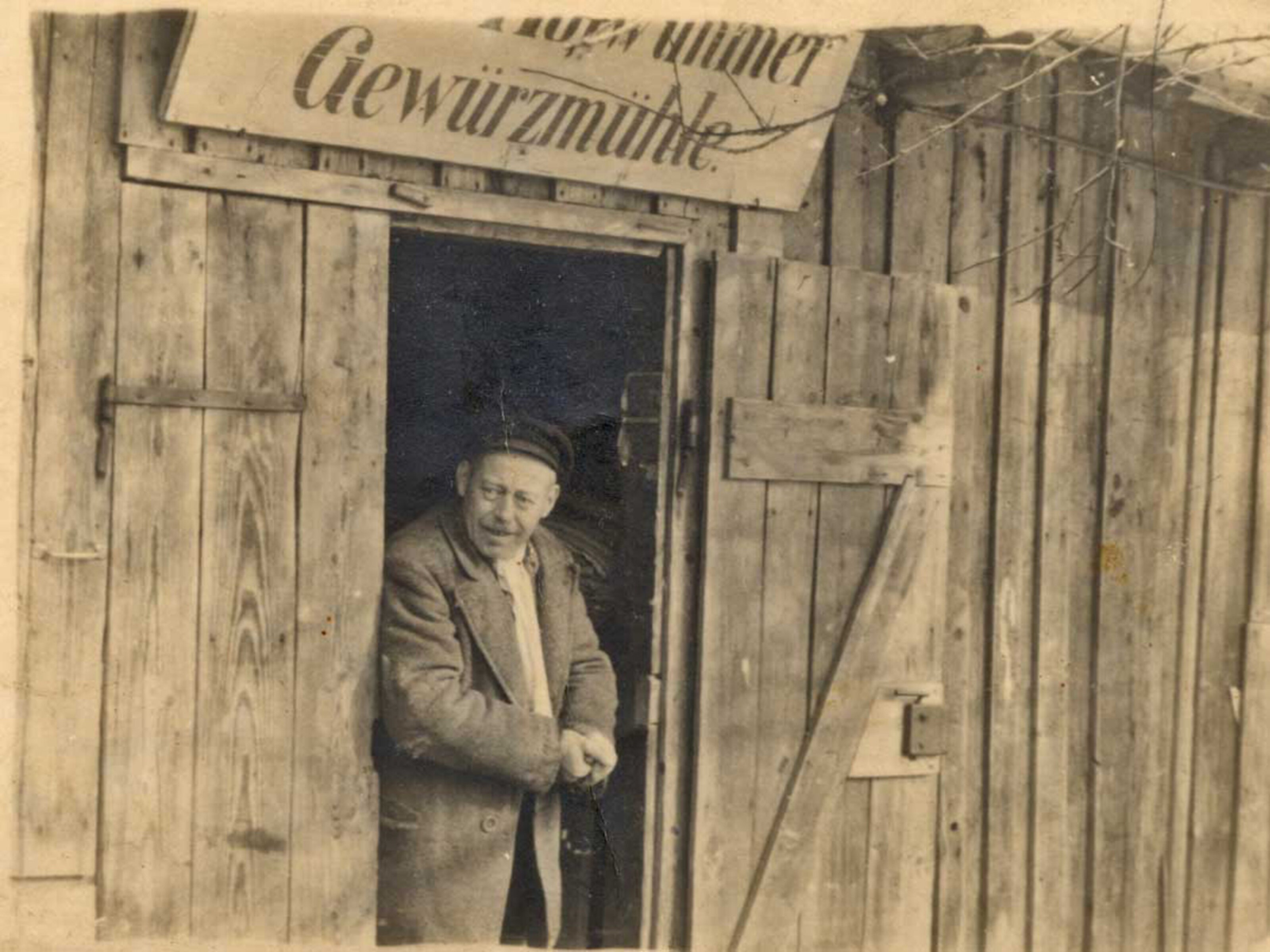 Gewürzmühle bei der Lipplmühle, im Bild zu sehen: Franz Hofwimmer; Urheber unbekannt, dem Museumsverein zur Verfügung gestellt von Alfred Brunschütz zur 700-Jahr Ausstellung 1999. Quelle: Museumsverein Marchtrenk-Welser Heide