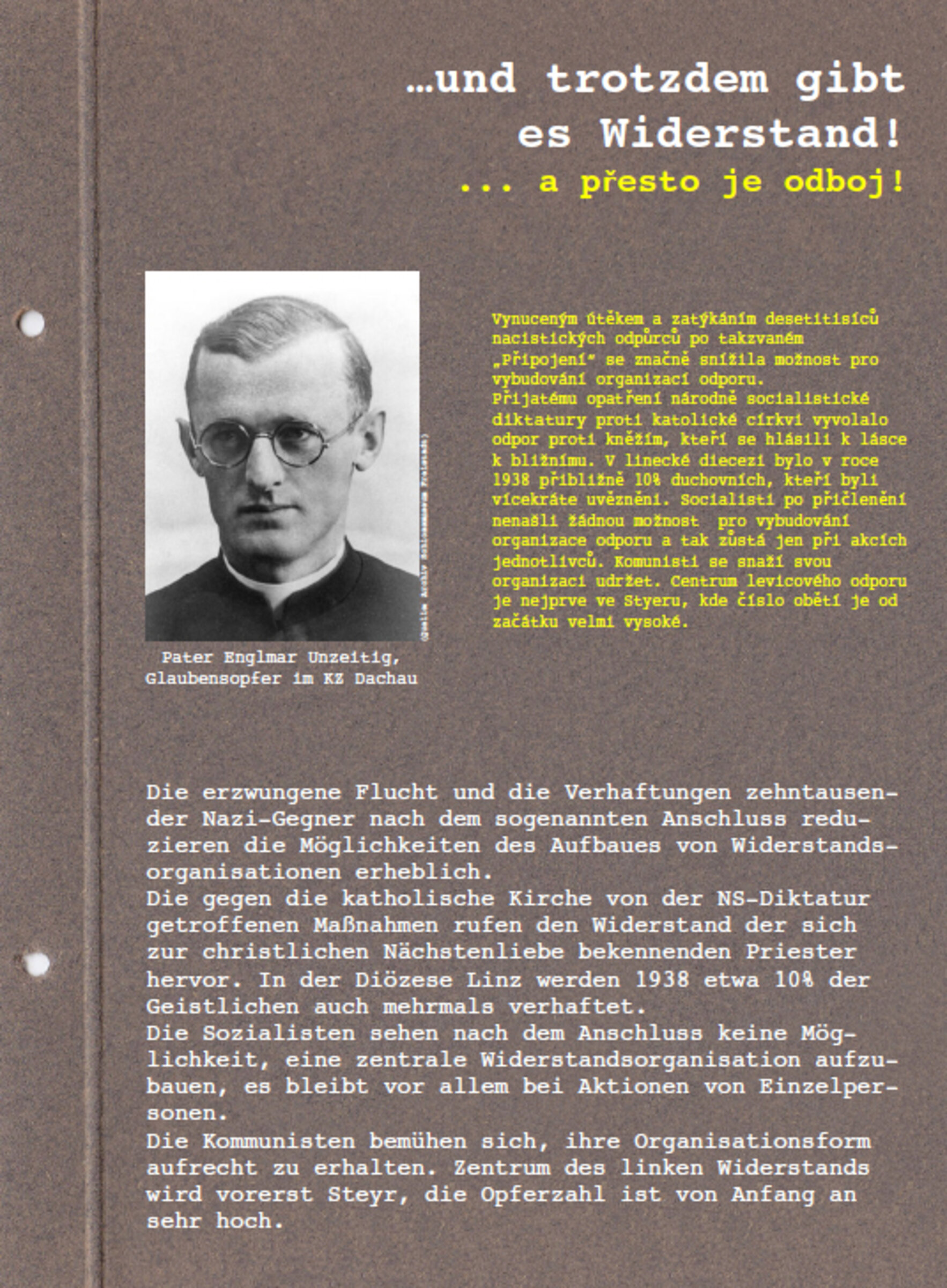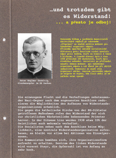 Ausstellungstafel: ...und trotzdem gibt es Widerstand | Ausstellung im Mühlviertler Schlossmuseum "Das Jahr 1938 - Ausgrenzen: Verschobene Grenzen", 9. Juni bis 15. Juli 2018. (c) Mühlviertler Schlossmuseum