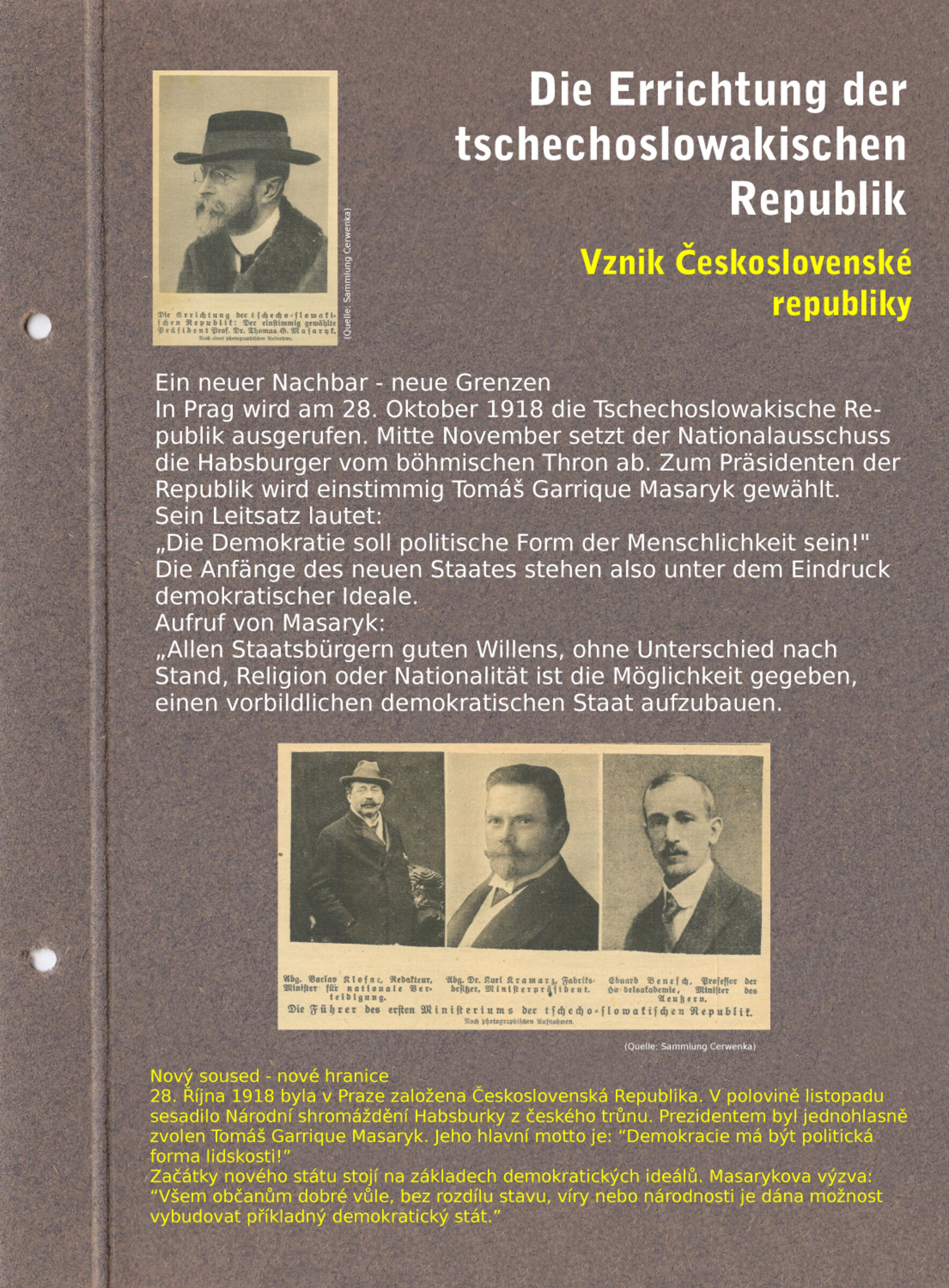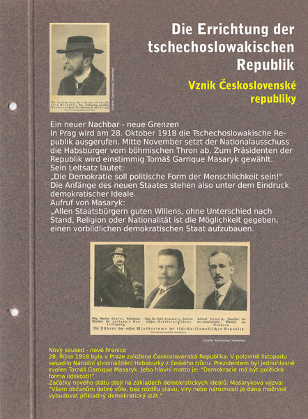 Die Errichtung der tschechoslowakischen Republik - Ausstellungstafel "Begrenzen - Zwei neue Staaten, eine Grenze", 2018 (c) Mühlviertler Schlossmuseum