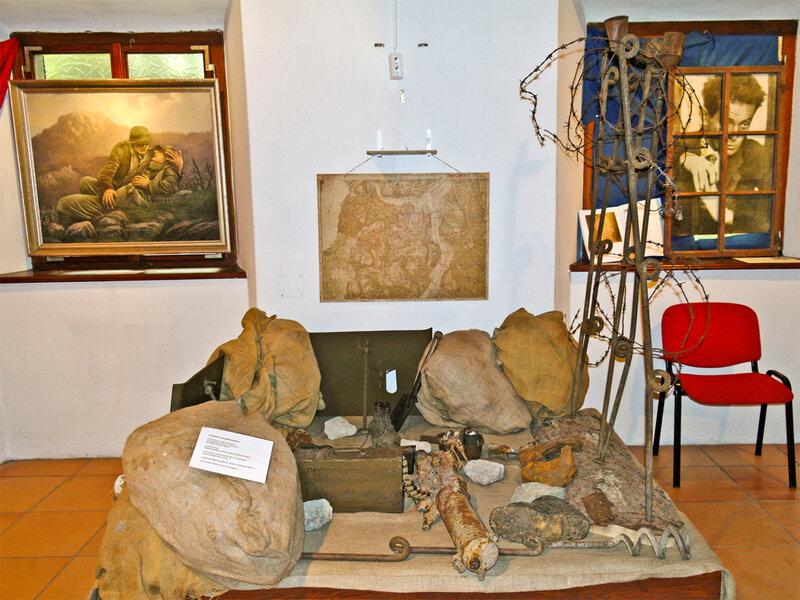 Ausstellungsansicht: Stellung mit Stachteldrahtverbau. Blick in die Sonderausstellung "Weyer und der Große Krieg" im Ennsmuseum Weyer, 2014/2015.