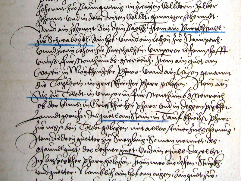1524 ließ sich Christoph Jörger nach dem Tod seines Vaters Wolfgang die Lehen von Kaiser Ferdinand bestätigen. Darunter befinden sich auch "ain Purkhstall zu Schwabegkh" und "ain Siz zu Tolledt".
