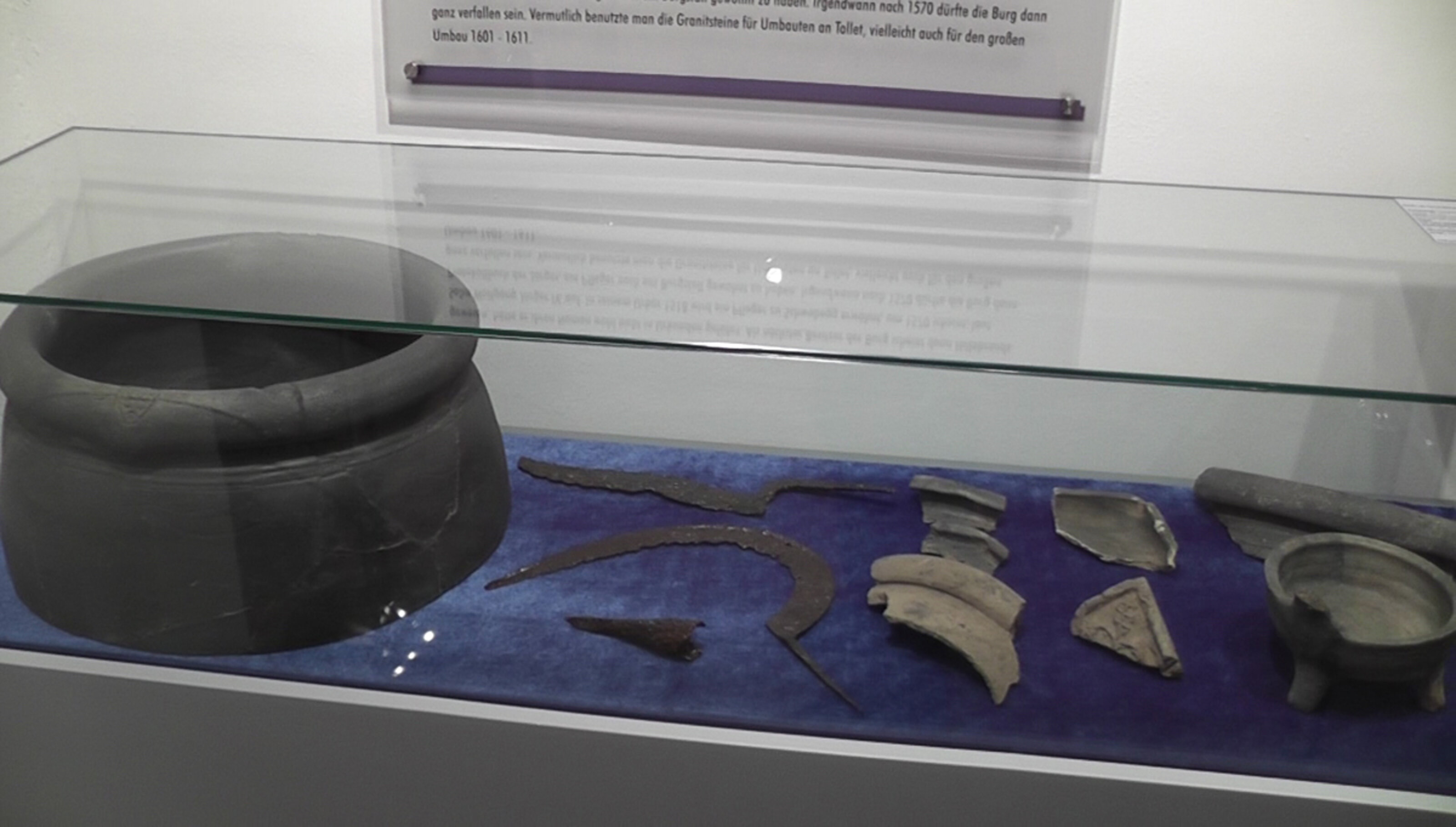 Vitrine mit Funden aus der Burg Steinbach/Schwabegg im Raum "Die Herkunft der Jörger". Foto: Familie Keller, Geboltskirchen