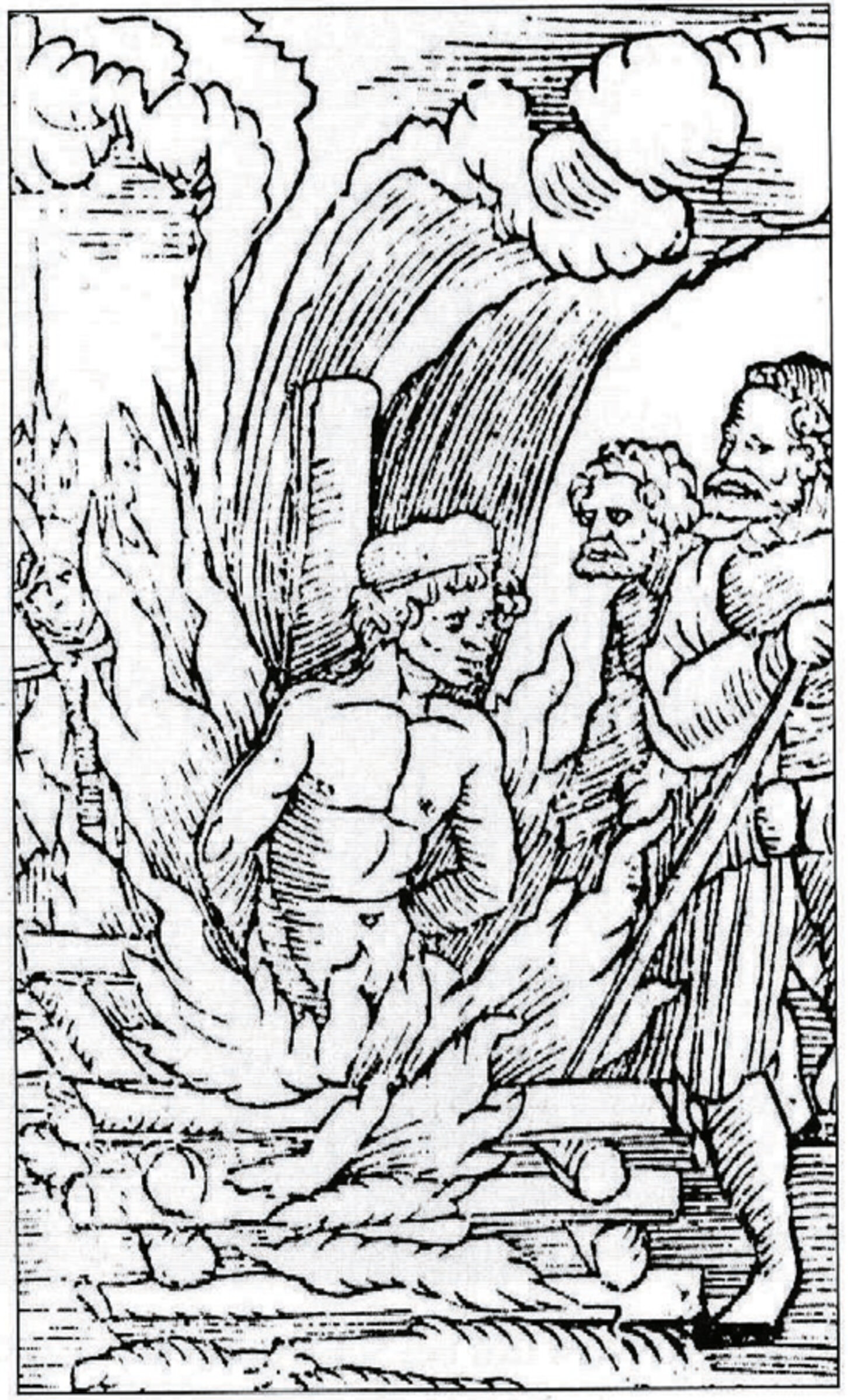 Die Verbrennung Leonhard Kaisers am 16. August 1527. Abbildung aus einer Flugschrift in Schärding.