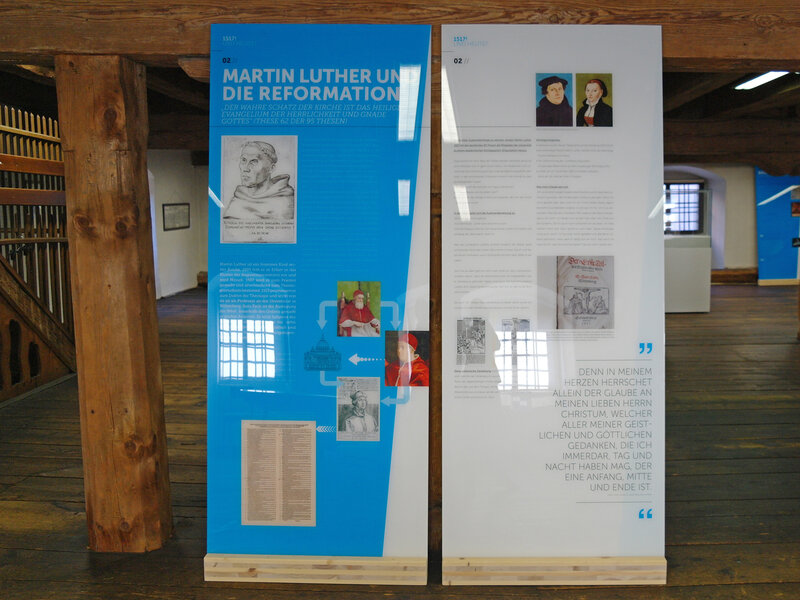 Luther und die Reformation – Ausstellungsansicht "1517! Und Heute?"; Gestaltung: Matern Creativbüro; Foto: Verbund Oö. Museen, 2017.