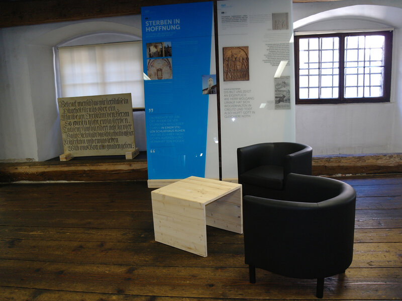 Sterben in Hoffnung – Ausstellungsansicht "1517! Und Heute?"; Gestaltung: Matern Creativbüro; Foto: Verbund Oö. Museen, 2017.