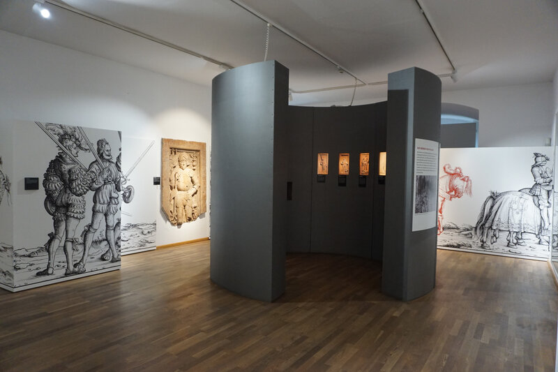 Blick in die Ausstellung: "Die Herren von Polheim"; Sonderausstellung im Stadtmuseum Wels-Burg "Maximilian I. Kaiser - Reformer - Mensch", 2019.