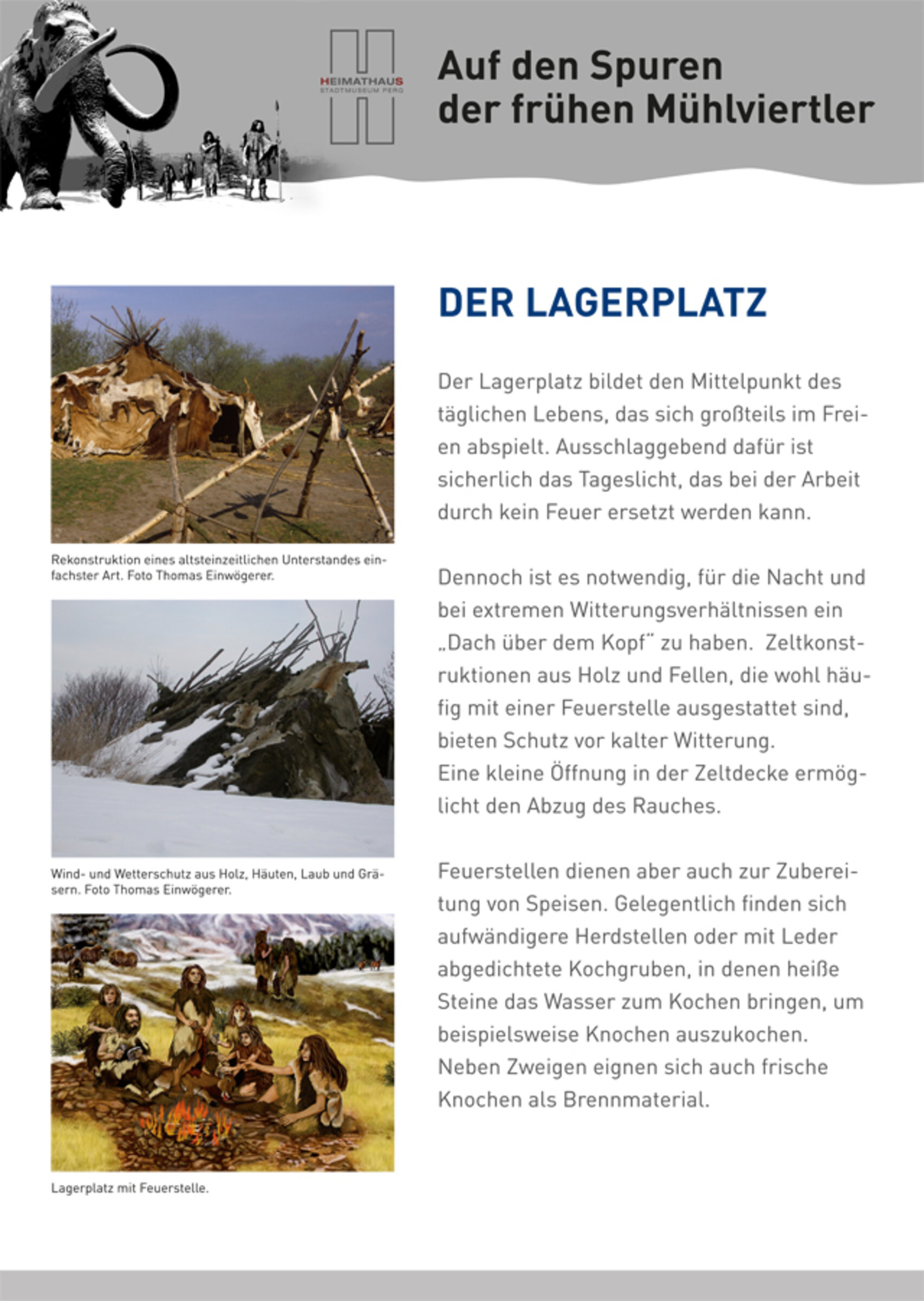 DER LAGERPLATZ - Ausstellungstafel: "Auf den Spuren der frühen Mühlviertler. Zwei eiszeitliche Jägerstationen in Perg/Weinzierl" im Heimathaus-Stadtmuseum Perg, 28. April bis 28. Oktober 2018.