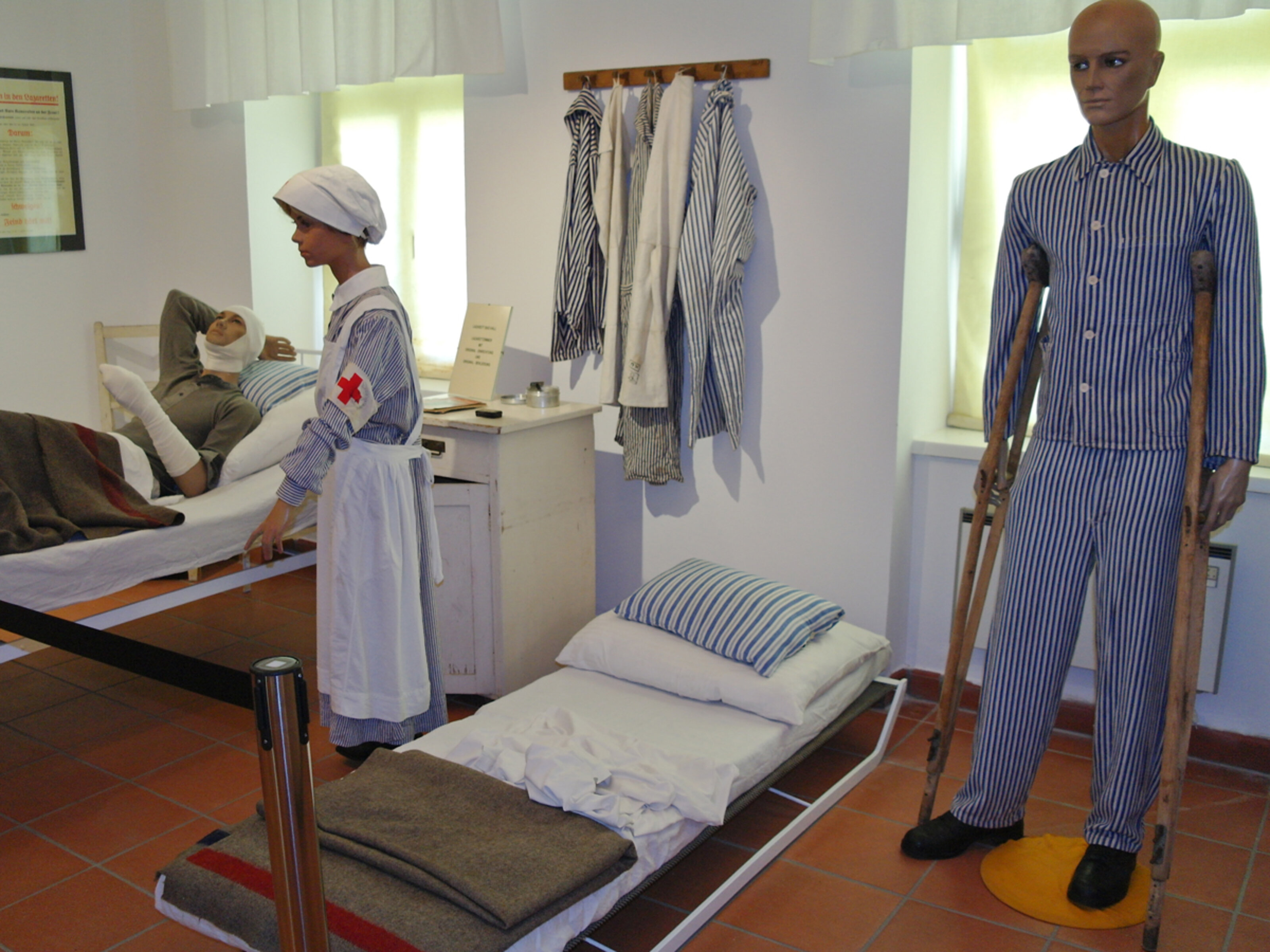 Blick in das "Lazarettzimmer" der Ausstellung mit originaler Einrichtung, originaler Kleidung und vielen Fotodokumenten. (Foto: Verbund Oö. Museen, 2015