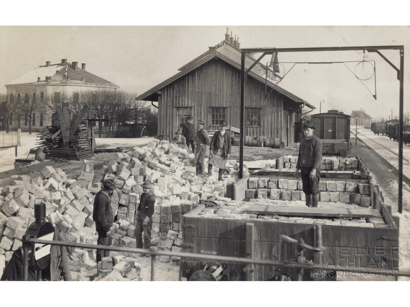 Granitverladung Bahnhof Perg 1920er-Jahre.