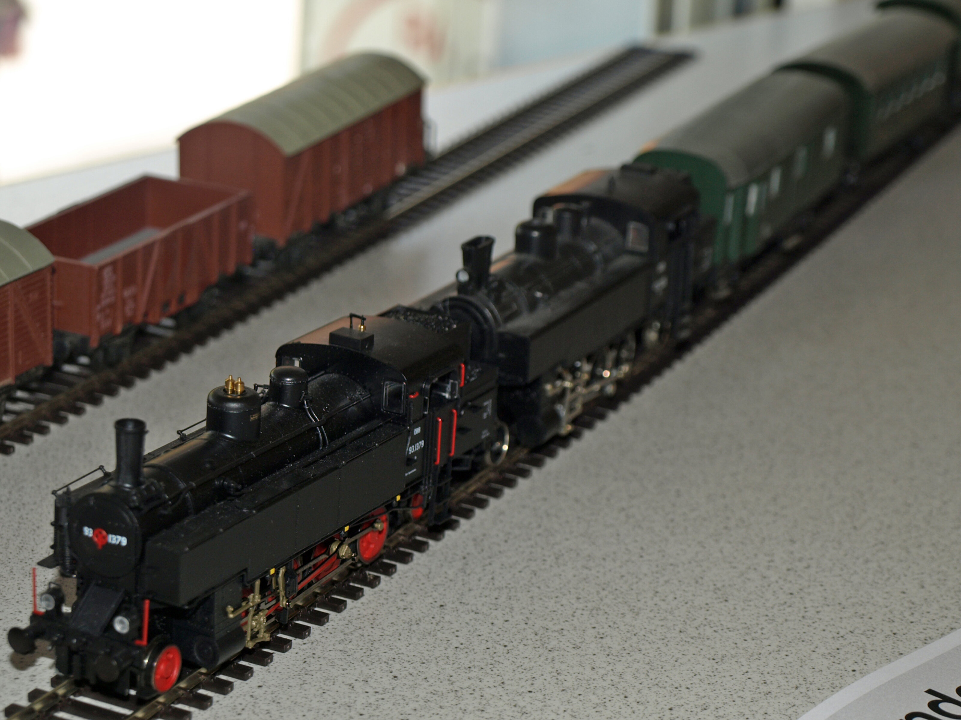 Modell: Nebenbahndampflok Baureihe 93 mit grünem Spanten- und Dienstwagen (bis 1968);