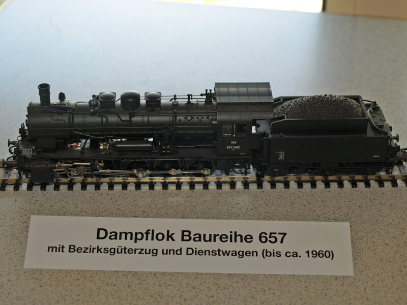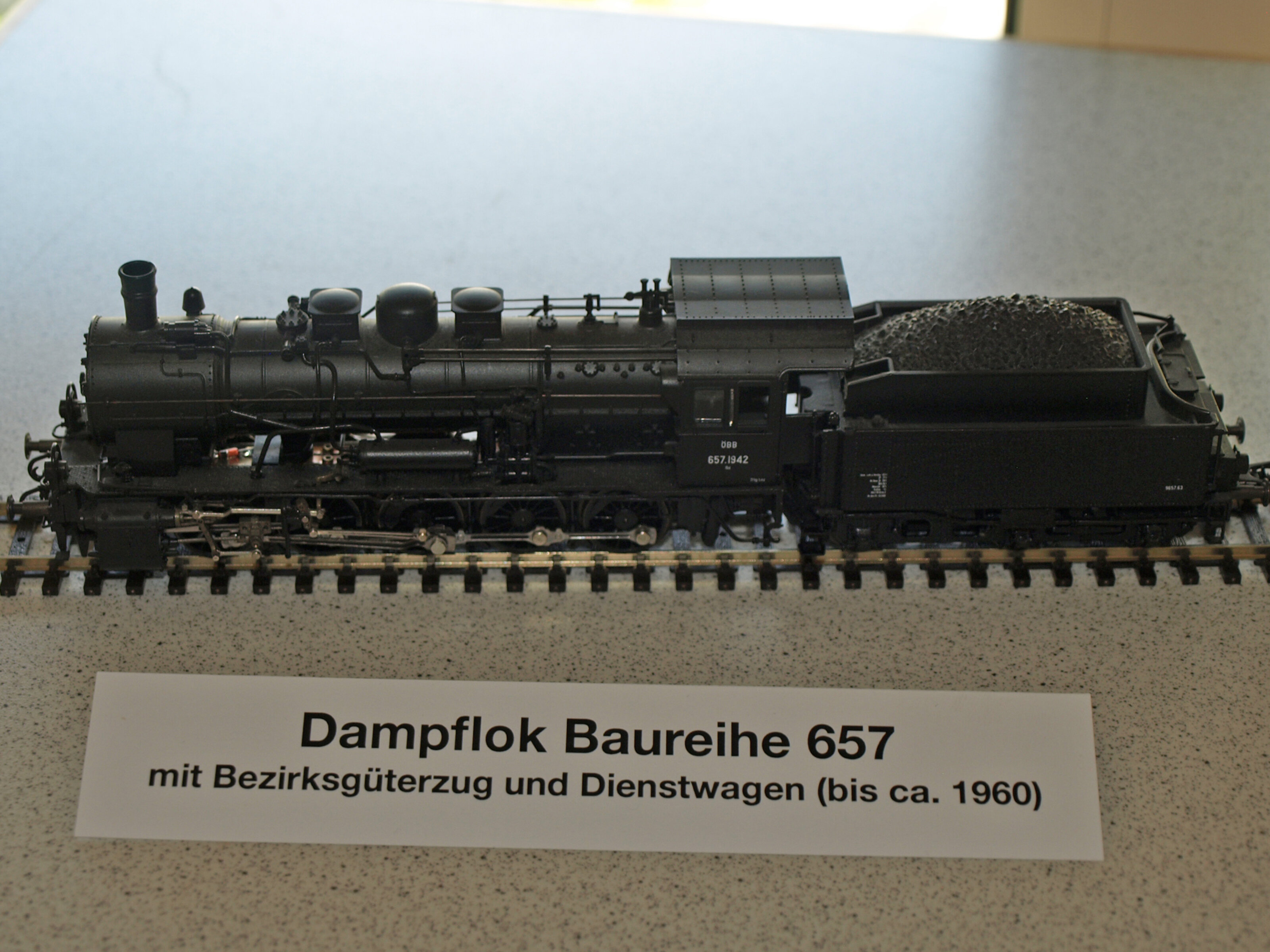 Modell: Dampflok Baureihe 657 mit Bezirksgüterzug und Dienstwagen (bis ca. 1960);
