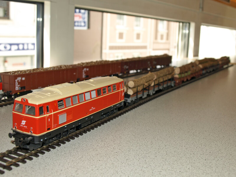 Modell: Diesellok Baureihe 2043 bei Bauzügen und bei Mangel an Lokomotiven der Baureihe 2016 als Ersatz bei Rüben- und Holzzügen.