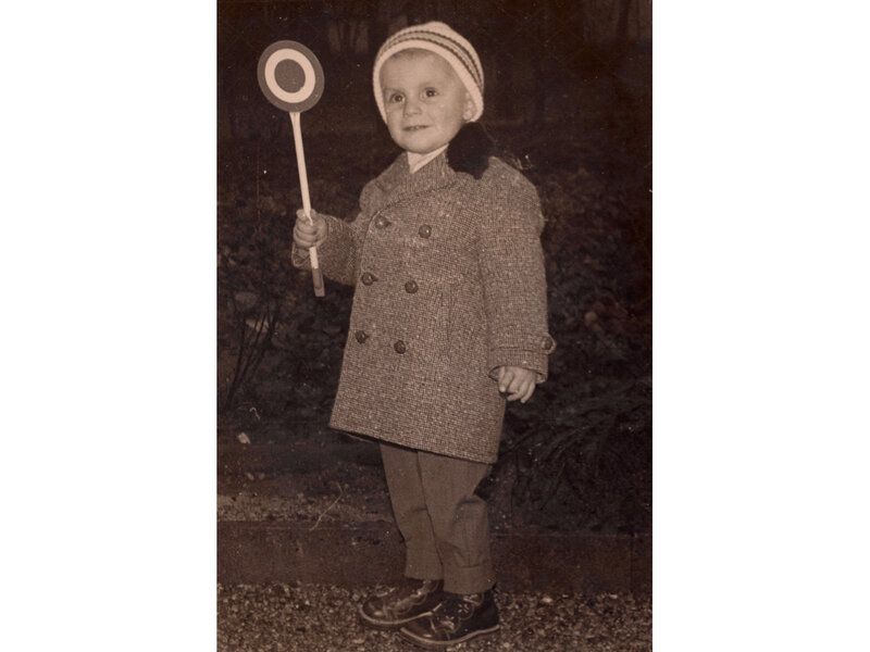 Luegmayr Werner klein, mit Signalkelle; SW-Fotografie.