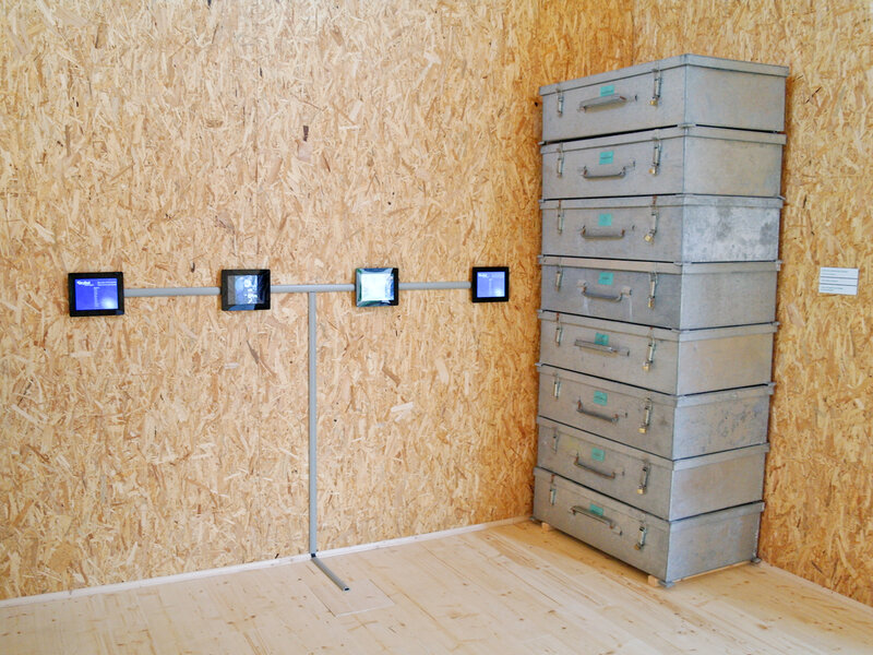 Koffer des Unternehmens Eisendorf, 1993. Metall. Die Fabrikanten; Ausstellungsansicht "Mensch und Natur" im Green Belt Center Windhaag, 2015. Foto: Verbund Oö. Museen
