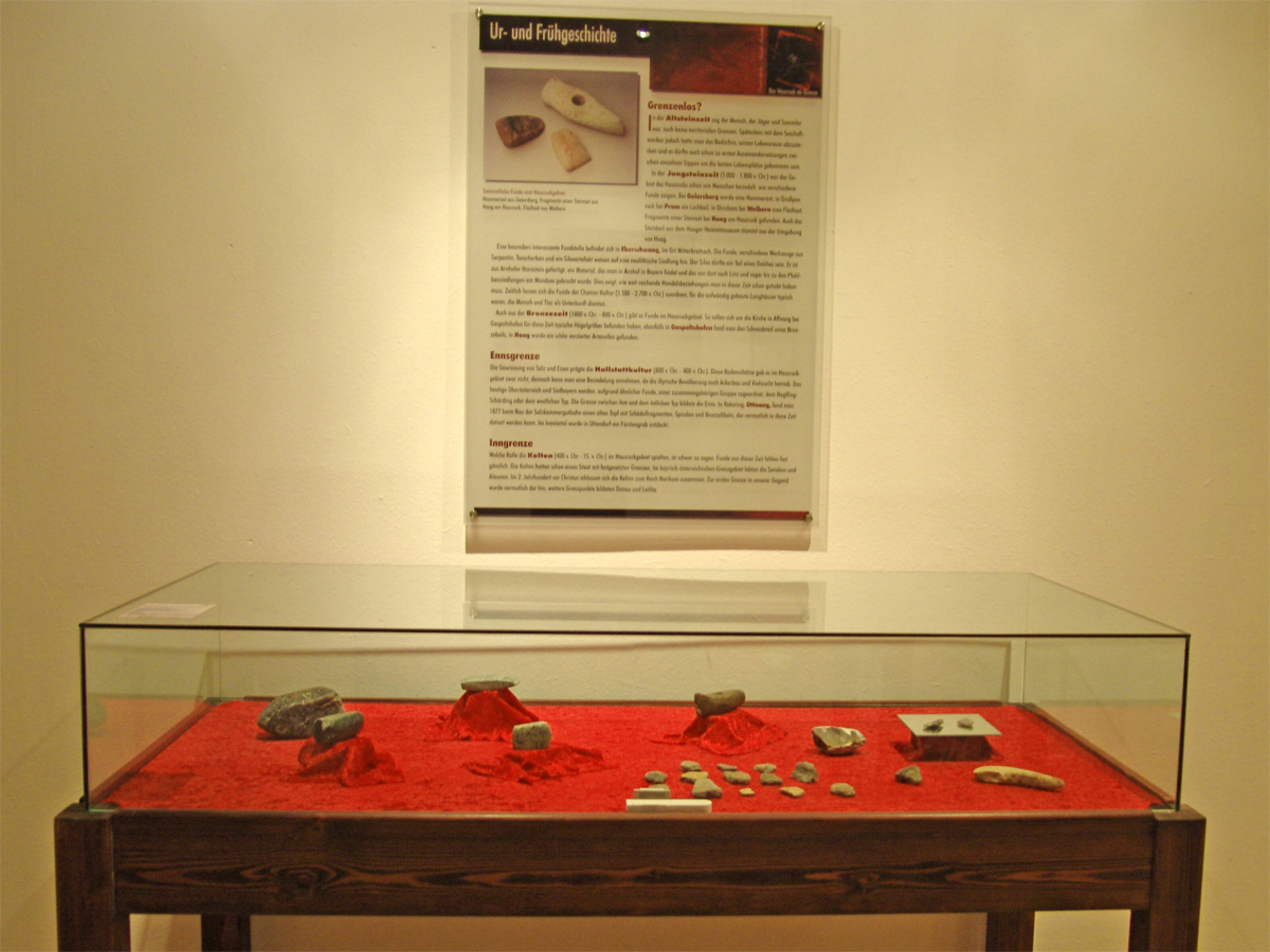 Raumansicht Ur- und Frühgeschichte in der Ausstellung "Der Hausruck als Grenze", Kulturgut Hausruck, 2012, Foto: Fam. Keller, Geboltskirchen