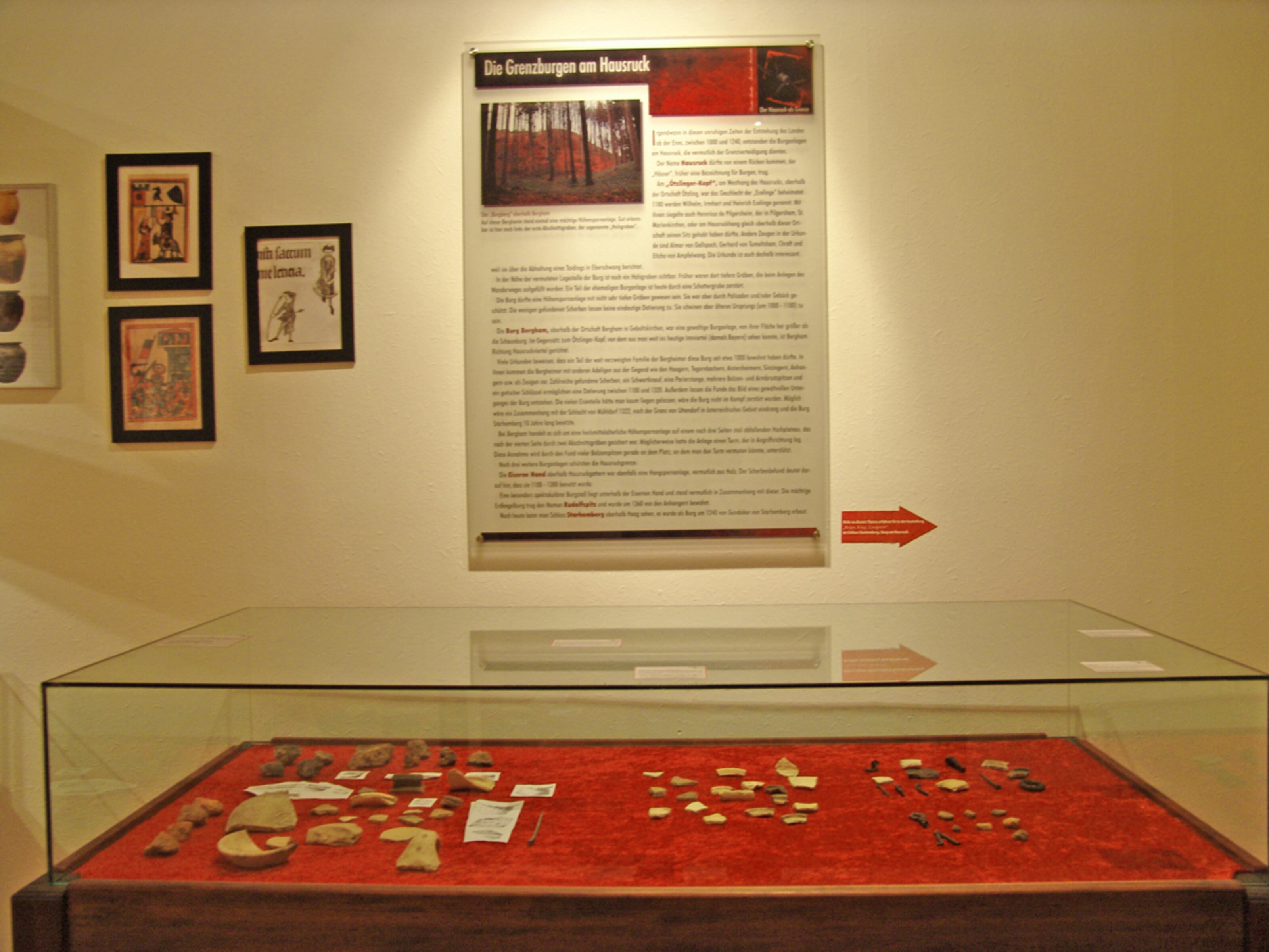 Vitrinenansicht: "Die Grenzburgen am Hausruck" in der Ausstellung "Der Hausruck als Grenze", Kulturgut Hausruck, 2012, Foto: Fam. Keller, Geboltskirchen