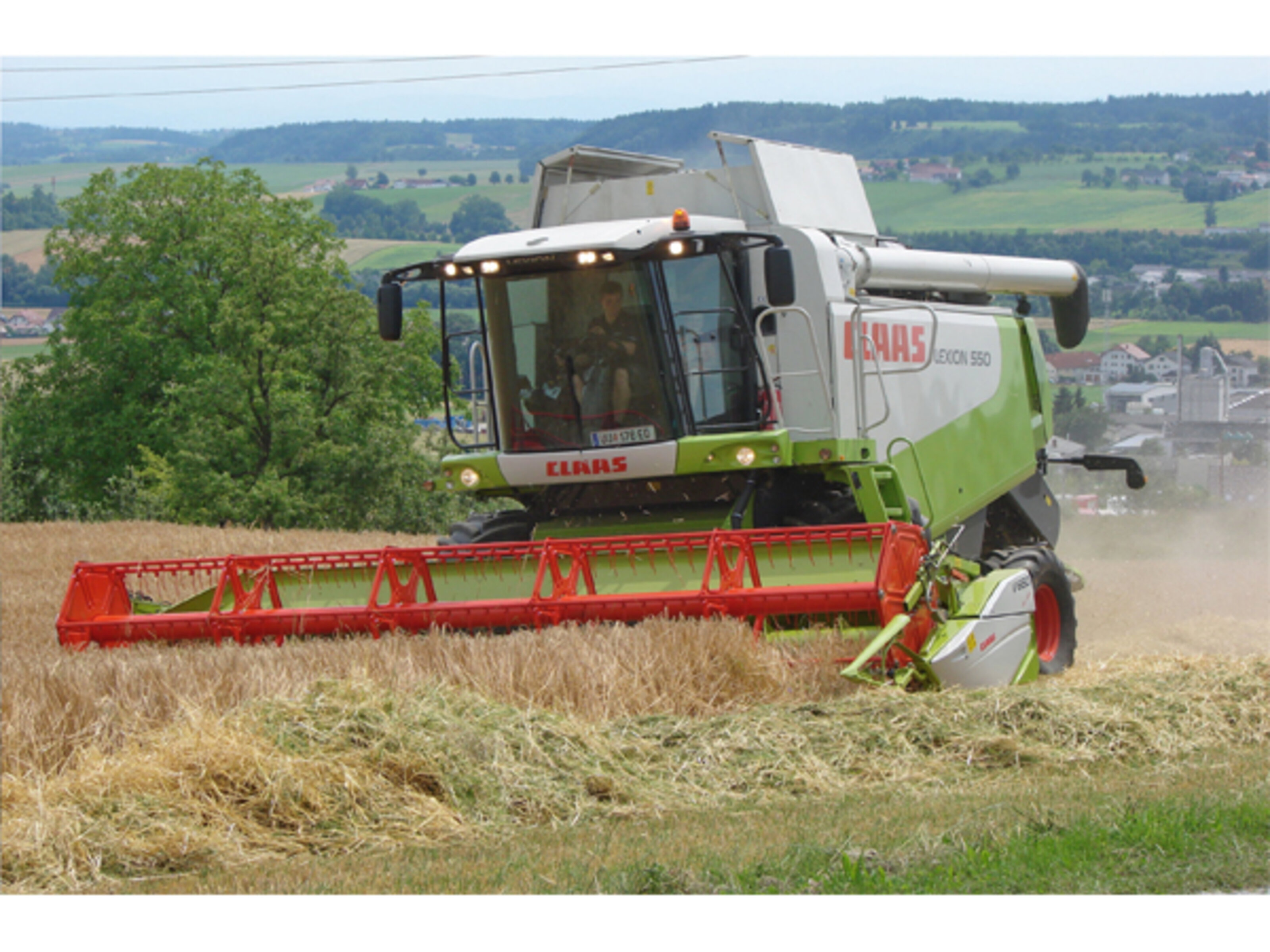 Mähdrescher mit 6,60m Arbeitsbreite im Einsatz in Gallneukirchen, 2013.