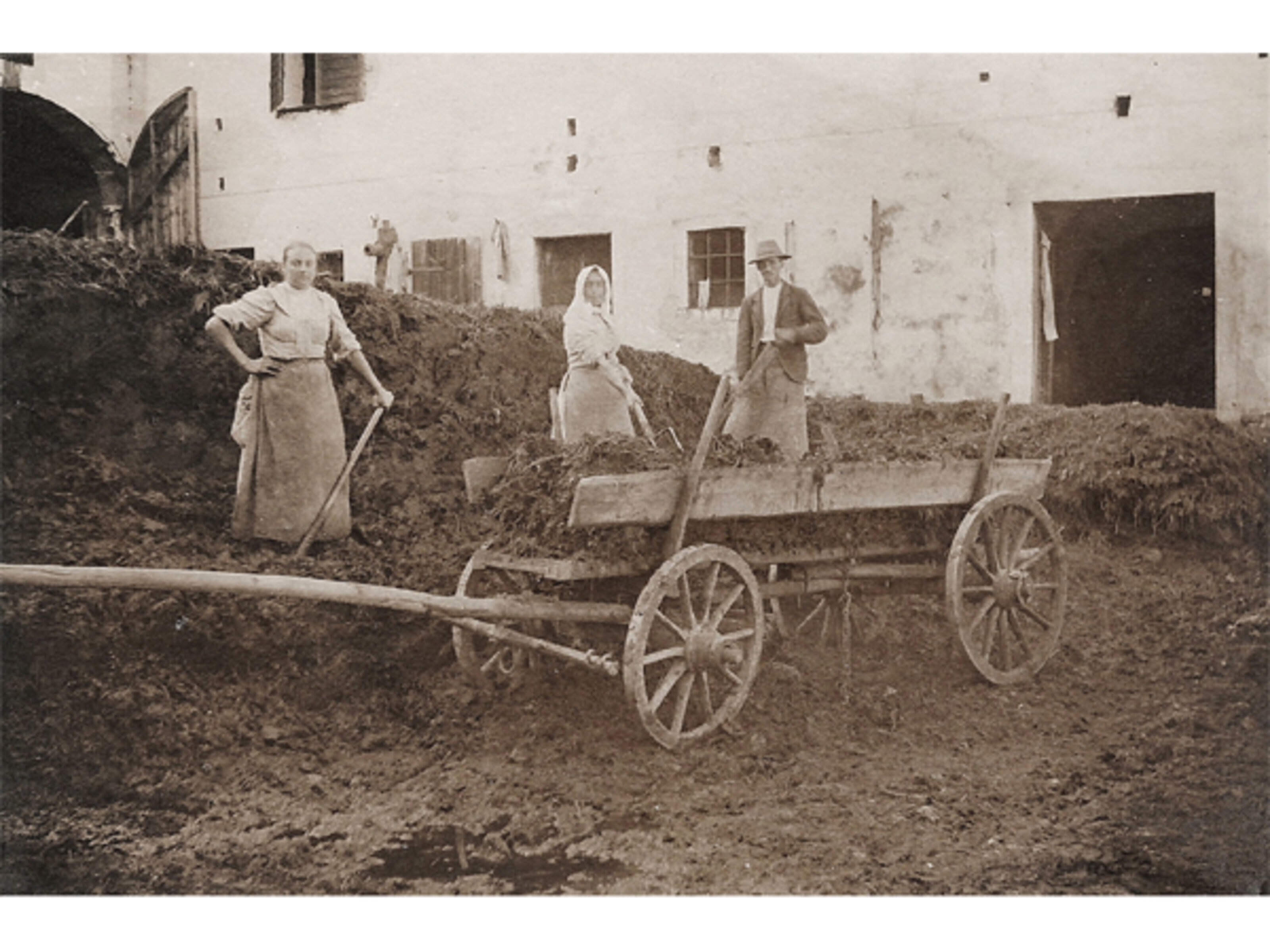 "Mistfåsten" aus einer Zeit als die Misthaufen noch im Hof der Bauernhäuser waren, um ca. 1915.