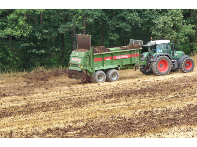 Moderner Miststreuer im Einsatz in der Gemeinde Gallneukirchen, 2013.