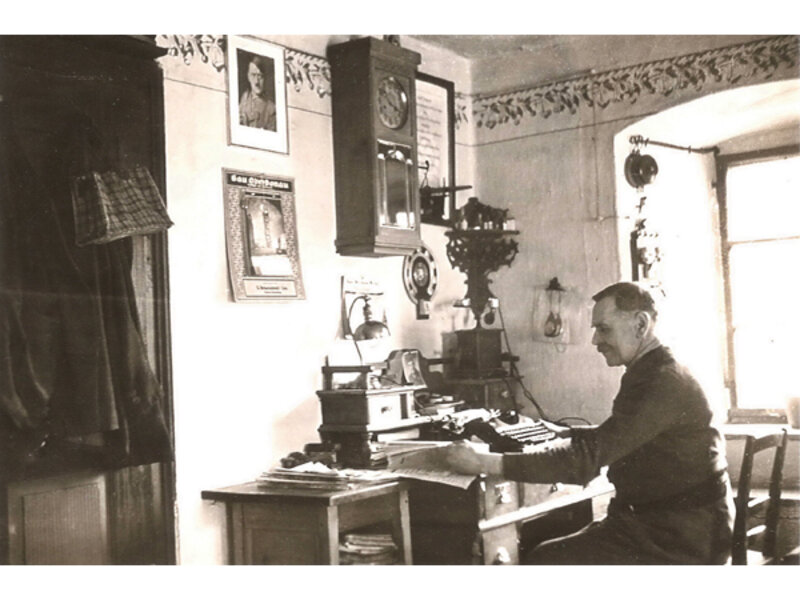 Büroarbeit am Schreibtisch in einer Stube in Hirschbach, um 1940.