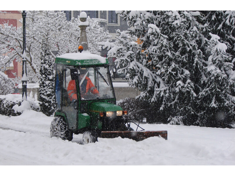 Kleiner Kommunaltraktor mit Schneeschild in Gallneukirchen, 2013.