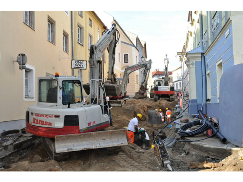 Maschineneinsatz für Leitungsgrabungen in der Waaggasse in Freistadt, 2012.