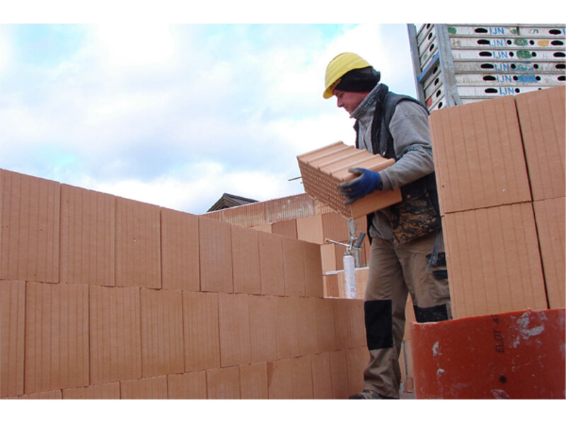 Bauen mit Dämmziegeln und Kleber in Gallneukirchen, 2014.