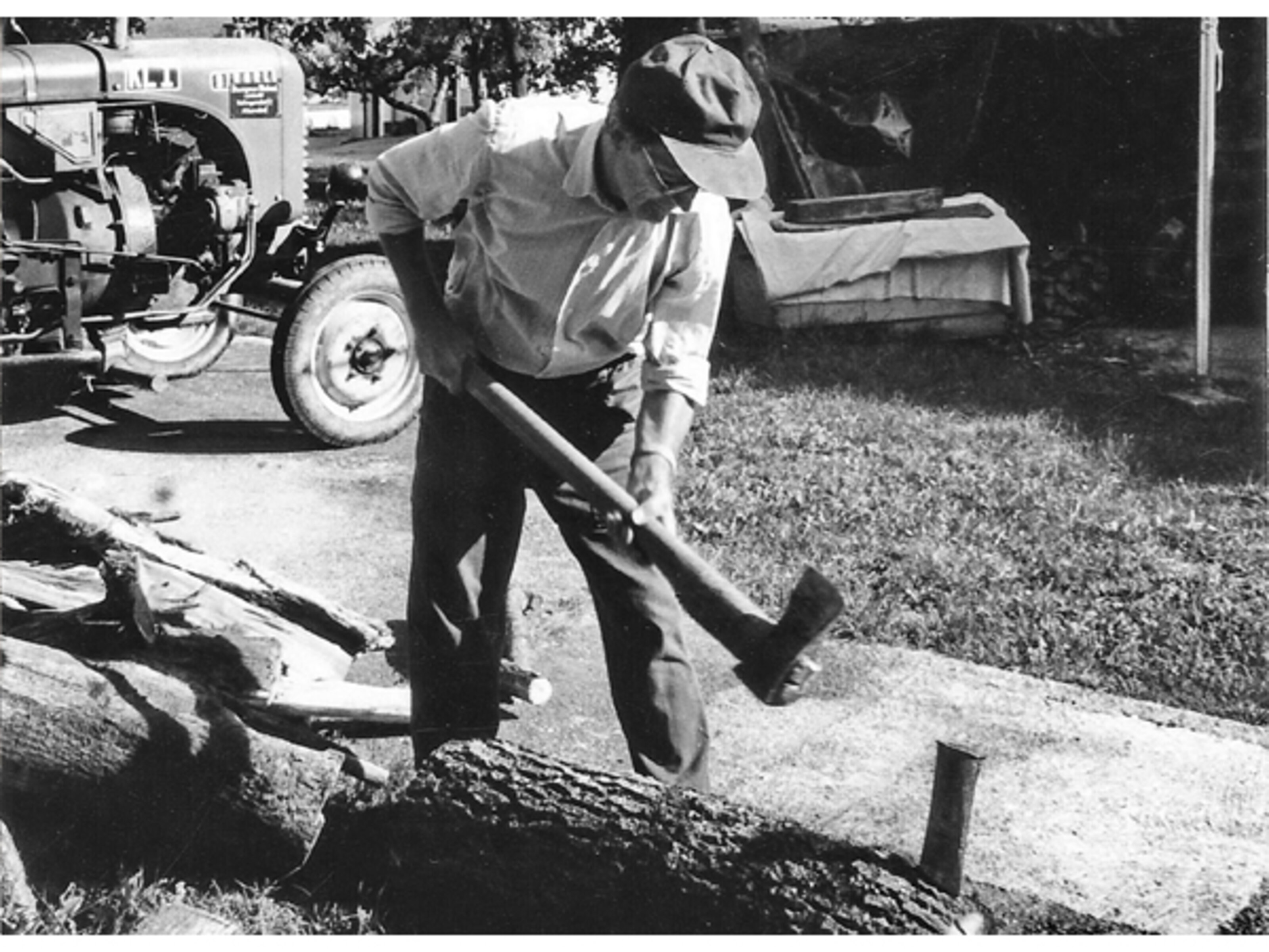 Beim Rundholzaufklieben in Kottingersdorf / Gemeinde Alberndorf, um 1980.