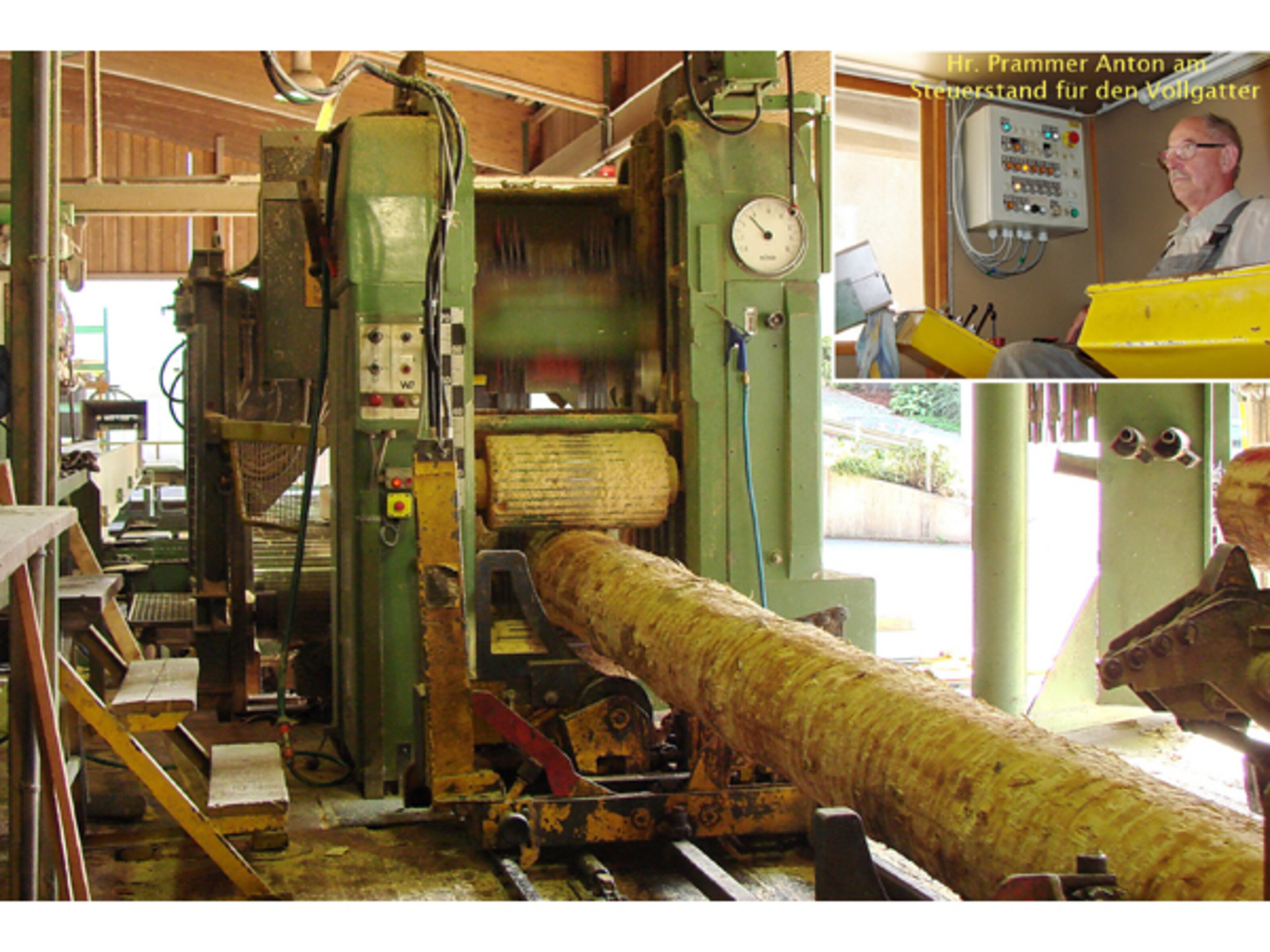 Vollgattersäge einer Holzbaufirma. Tragwein, 2015.