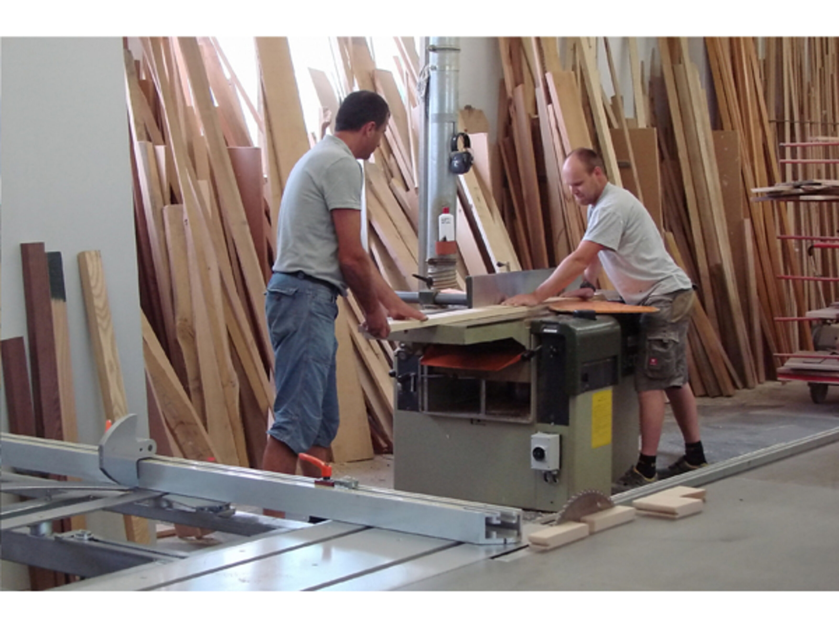 An der Hobelmaschine - Tischlerei in Pregarten, 2015.