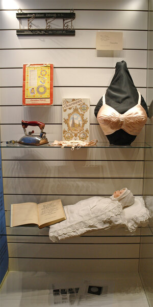 1940-1945: Vitrine in der Ausstellung 90 Jahre Schlossmuseum Freistadt, Foto: Verbund Oö Museen, 2016