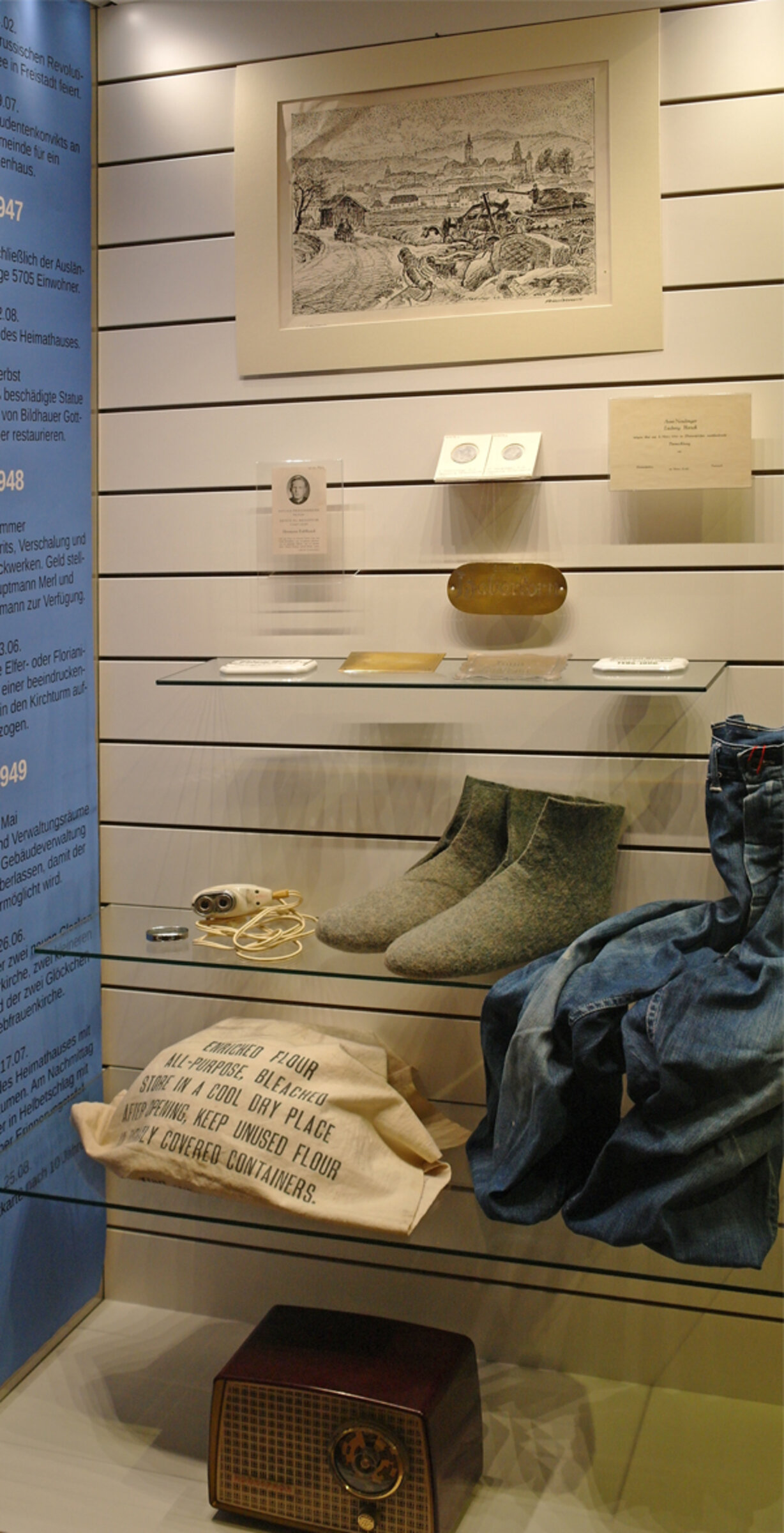 1946-1949: Vitrine in der Ausstellung 90 Jahre Schlossmuseum Freistadt, Foto: Verbund Oö Museen, 2016