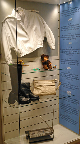 1981-1985: Vitrine in der Ausstellung 90 Jahre Schlossmuseum Freistadt, Foto: Verbund Oö Museen, 2016