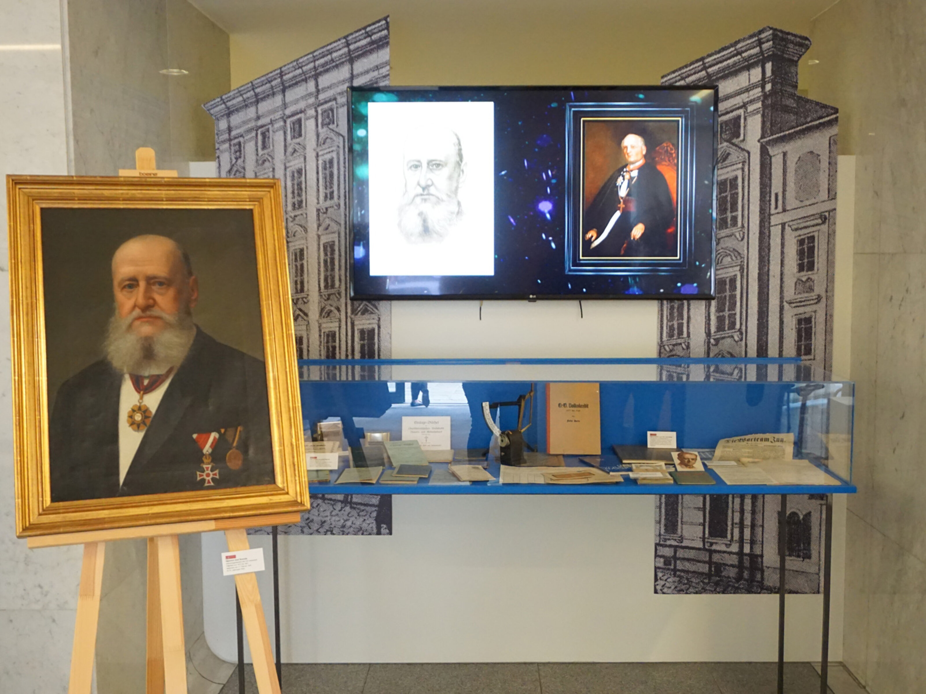 Blick in den Ausstellungsraum: Vitrine zur Gründung 1873